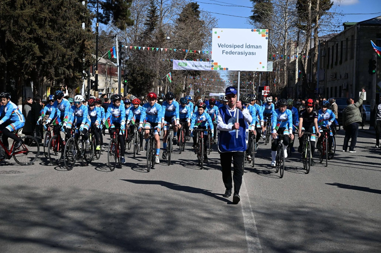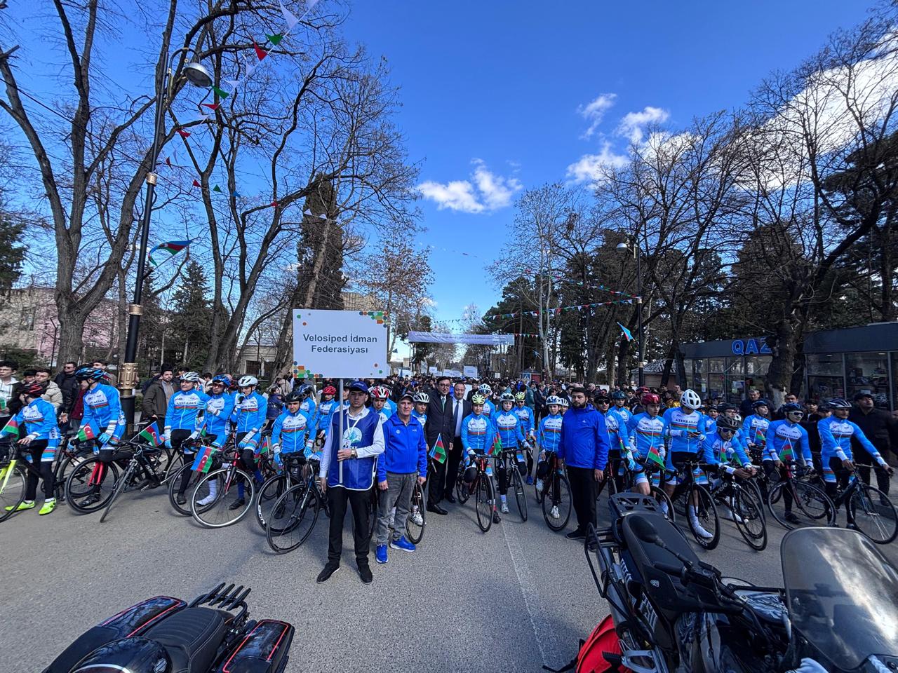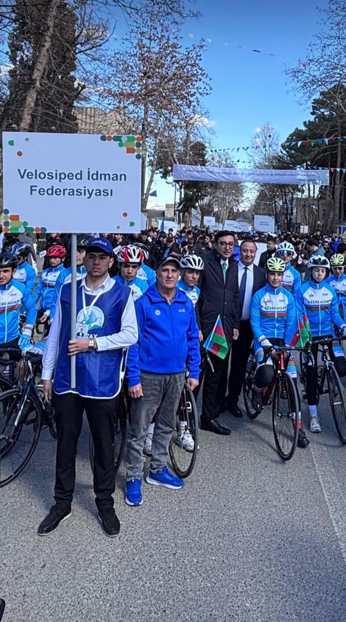 Azərbaycan Velosiped İdmanı Federasiyasının idmançı və məşqçi heyəti də paradda iştirak edib. Əvvəlcə federasiyaların sıra düzülüşü ilə keçidi baş tutub. Daha sonra Azərbaycan Respublikasının Dövlət Himni səsləndirilib. Gənclər və idman naziri Fərid Qayıbov ölkəmizdə hər il keçirilən Bədən Tərbiyəsi və İdman Günü haqqında məlumat verib. “İdman Paytaxtı” layihəsinin rəmzi açarı Qəbələdən təhvil alınaraq Qazaxa təqdim edilib. Ardınca Qazax “İdman Paytaxtı”nın maskotu səhnədə təqdim olunub.