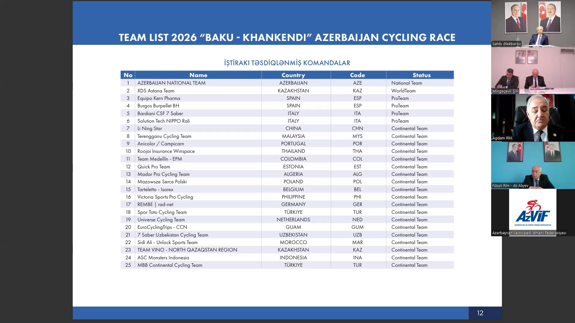 Addressing the meeting, Azerbaijan’s Minister of Youth and Sports Farid Gayibov recalled the cycling races previously organized in our country. He described the inclusion of the “Baku-Khankendi” Azerbaijan Cycling Race, scheduled for May 10–14, in the International Cycling Union (UCI) 2026 sports calendar as a significant event. He expressed confidence that, with the support of relevant institutions, this race would also be held at a high level.