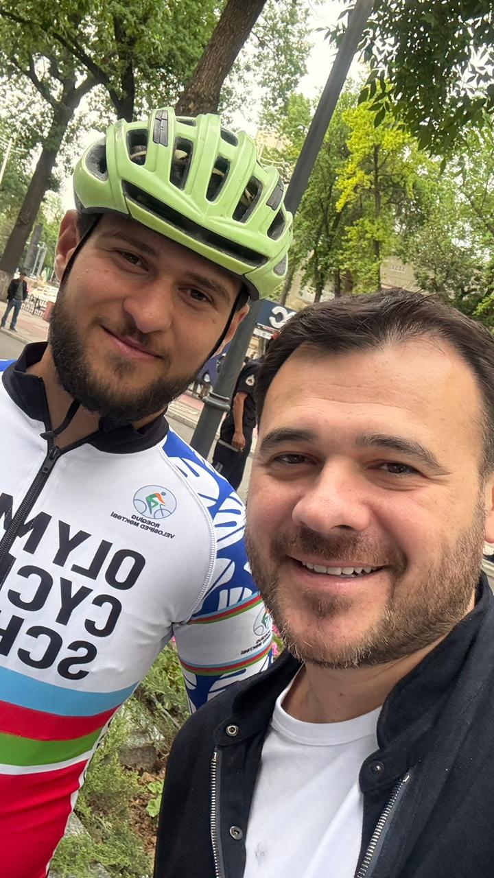 Mayın 10-14-də keçiriləcək Bakı-Xankəndi Azərbaycan Velosiped Yarışına hazırlaşan şose velosipedi üzrə Elit/U23 yəğma komandamızın üzvləri hazırda Özbəkistandadır. Paytaxt Daşkənddə məşqdən qayıdarkən komanda üzvlərimiz təsadüfən xoş bir sürprizlə üzləşiblər – velosipedçilərimiz tanınmış iş adamı, “Sea Breeze Resort”un təsisçisi Emin Ağalarovla görüşüblər.