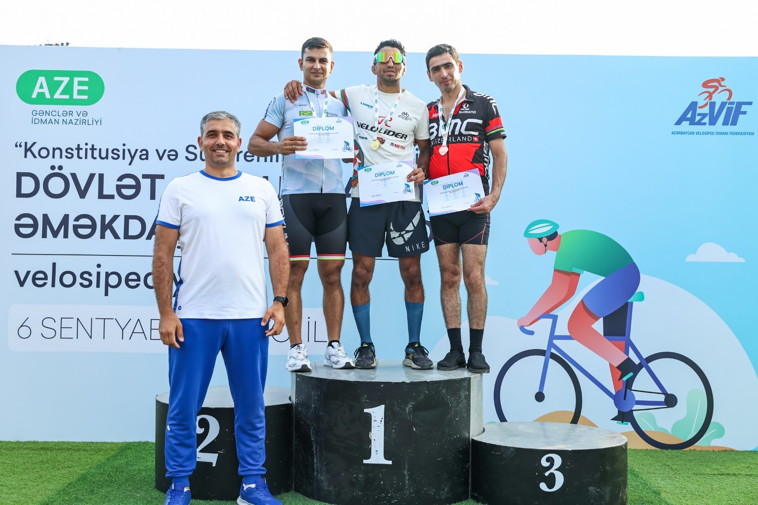 “Konstitusiya və Suverenlik İli” çərçivəsində Azərbaycan Respublikasının Gənclər və İdman Nazirliyi və Azərbaycan Velosiped İdmanı Federasiyasının birgə təşkilatçılığı ilə dövlət qurumlarının əməkdaşları arasında velosiped yarışı keçirilib. Veloparkda təşkil olunan yarışda 11 dövlət qurumunun nümayəndələri iştirak edib.