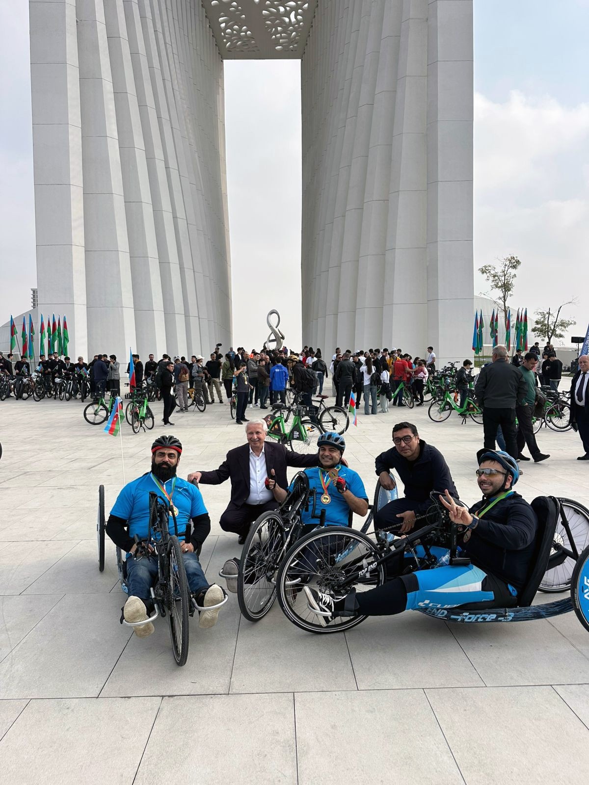 Dövlət Bayrağı Meydanından start götürən veloyürüşdə gənclər və idman naziri Fərid Qayıbov da öz velosipedi ilə iştirak edib. 300-dən artıq peşəkar və həvəskar velosipedçi, o cümlədən paravelosipedçilər Dənizkənarı Bulvar ərazisindəki velosiped yolları ilə Zəfər Parkına doğru hərəkət ediblər. “Crescent Mall”un yaxınlığından Zəfər Parkınadək iştirakçıları Azərbaycan bayraqlarını daşıyan motosikletçilər müşayiət edib.