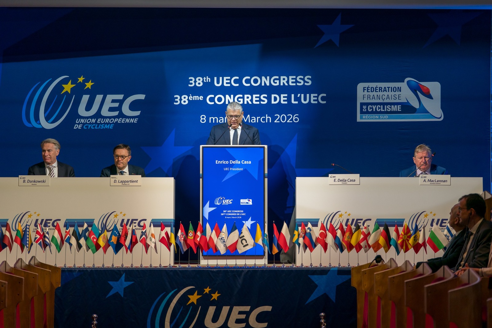 Beynəlxalq Velosipedçilər İttifaqının (UCI) prezidenti David Lappartienin də qatıldığı tədbirdə Avropa Velosipedçilər Birliyinə daxil olan 51 milli federasiyanın 46-nın nümayəndələri iştirak edib. Konqres Avropa tarixinin simvolik məkanlarından biri hesab olunan məşhur Papa Sarayında keçirilib.